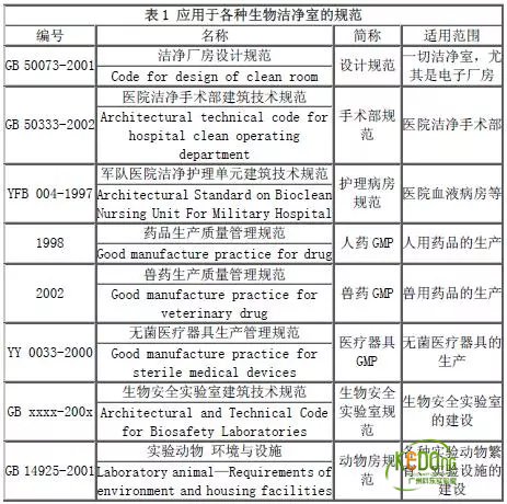 目前,表1列出了不同類型的生物潔凈室的一些規范。只有熟悉各行業的特點,充分掌握各種規范的要求,才能在生物的設計,建造和調試中做好工作。